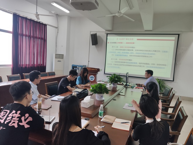 会上,史书记首先重点解读了《中国共产党普通高等学校基层组织工作条例》。他指出,《条例》的修订和实施,对于全面贯彻党的教育方针,落实立德树人根本任务,建设高质量教育体系、建设教育强国,具有重要意义,全体党支部要认真学习、遵照执行。在史书记还领学了《色色啦