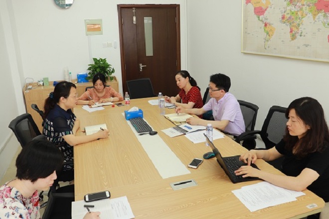 对外教日常教学管理等方面的工作进行交流汇报,国际交流处孙梦黎科长与荣艳老师还就外教聘用、合同沟通、外教薪酬、日常管理中的有关内容进行了补充与说明。