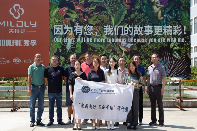 8月4日,调研团前往立足高端纺织品生产和出口的江苏美得妮、艺源等家用纺织品有限公司调研。调研团队与纺织企业领导分别介绍校企情况,双方就企业管理、学生创新能力培养、人才招聘及成长体系等展开探讨,希望建立常态化互动机制,结合行业专业特色培养能够独当一面的专业外贸人才,进一步加强资源对接、拓展合作空间,实现互惠共赢、共同发展。