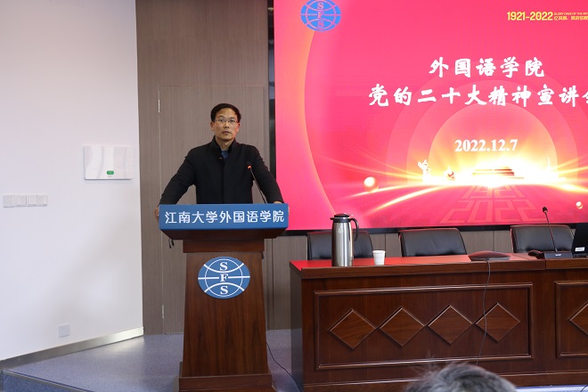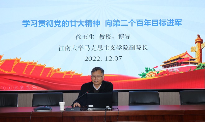 邀请学校学习贯彻党的二十大精神宣讲团成员、马克思主义学院副院长徐玉生教授作题为“学习贯彻党的廿大精神,向第二个百年奋斗目标进军”的专题辅导报告。会议由色色啦
