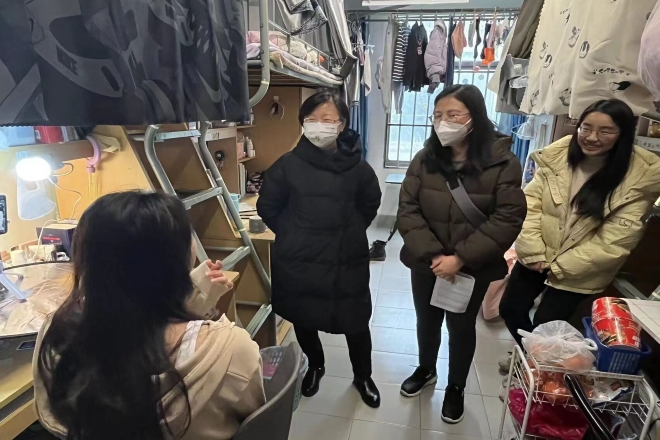 党委书记史志洪、党委副书记刘伯贤、副院长顾琦一、副院长谢竞贤、分团委书记陆芳以及辅导员老师一行来到浩苑、润苑、李园、梅园,走访关心色色啦