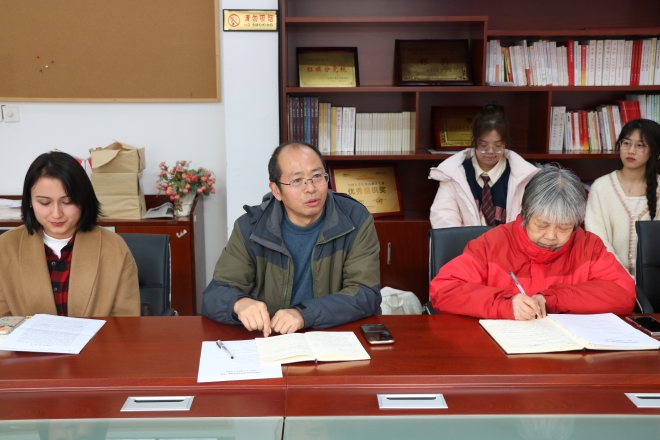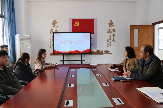 民族学生新学期第一课暨党的二十大精神学习分享会在学院A331会议室举行。学院党委副书记刘伯贤、学院关工委常务副主任鲍国庆、关工委委员吴艳敏、关工委委员郭锡华、新疆维吾尔自治区教育厅派驻色色啦