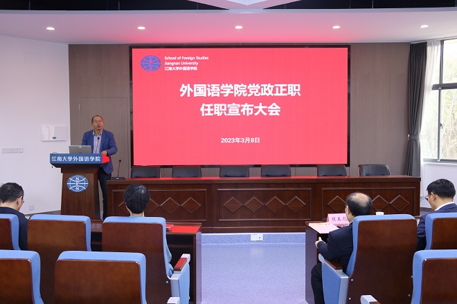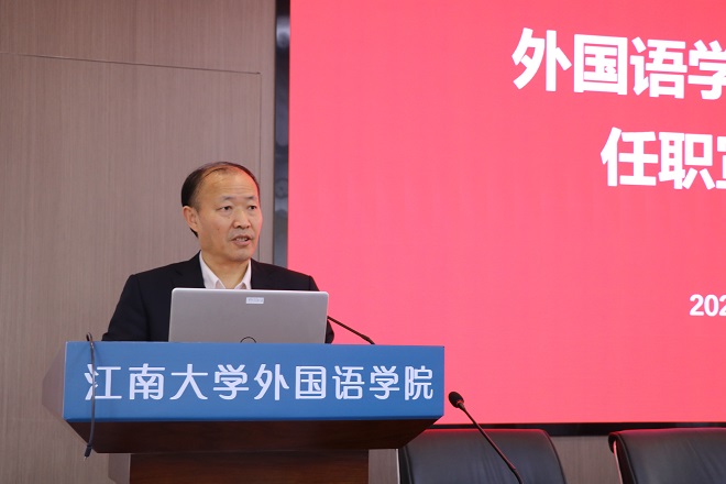 院长。顾正彪指出,此次中层干部的换届调整,是学校干部任职目标责任制的例行工作,也是优化班子结构、促进改革发展的一项重要举措。他对学院上届班子的工作给予高度肯定,并对新一届领导班子提出工作希望。第一,要旗帜鲜明讲政治,学院领导班子一定要把讲政治作为立身之本,坚持社会主义办学方向,坚持立德树人根本任务,强化党政同责、一岗双责意识。第二,要敢于担当善作为,抢抓发展机遇,紧扣国家战略和学校发展,持续提升大学英语对学校“双一流”建设和人才培养的贡献度,进一步拓展专业硕士学位点建设,设立二级博士点。要根据国家和学校发展战略,积极探索建设具有鲜明特色的英语和日语专业。第三,要团结协作聚合力,提高班子战斗力,牢固树立“一盘棋”思想,围绕中心工作,密切配合,通力协作。第四,要以身作则当表率,从严治院,从严立职,从严带队伍。
