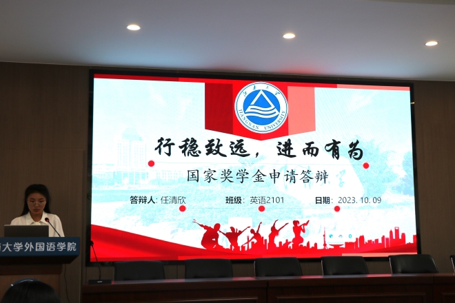 会议伊始,主持人宣读了学校的相关文件和通知,介绍了学院本科生国家奖学金评审要求,明晰了此次国家奖学金答辩的答辩规则。经过前期个人申报、学院审核初评,共有9名申报者参与此次答辩,答辩者按照年级顺序依次上台,并就思想品德、学习成绩、学科竞赛、社会实践等方面进行答辩展示,充分地彰显了外院优秀学子刻苦努力、勤学奋进、勇于担当的良好风貌。整场答辩会气氛热烈、井然有序,在场的学生纷纷受到答辩人的优秀事迹所鼓舞,并给予每一位答辩人热烈的掌声。国奖评选答辩会不仅是学生一次展示的机会,更是一次难得的学习机会。
