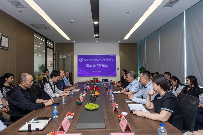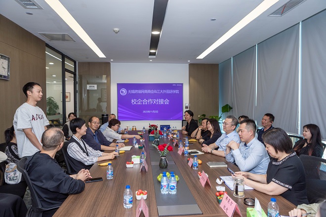 和无锡跨境网商商会校企合作对接会在无锡市国金中心金丽洁国际贸易有限公司成功举办。学院李荣华书记、刘伯贤副书记、英语系杨勇教授、日语系吴颖副教授、社会服务部司马广老师,无锡市梁溪区商务局于蕾、无锡跨境网商会会长许大可、执行会长杨春怡以及网商会15家企业负责人和学生代表30余人参加了本次对接座谈会。