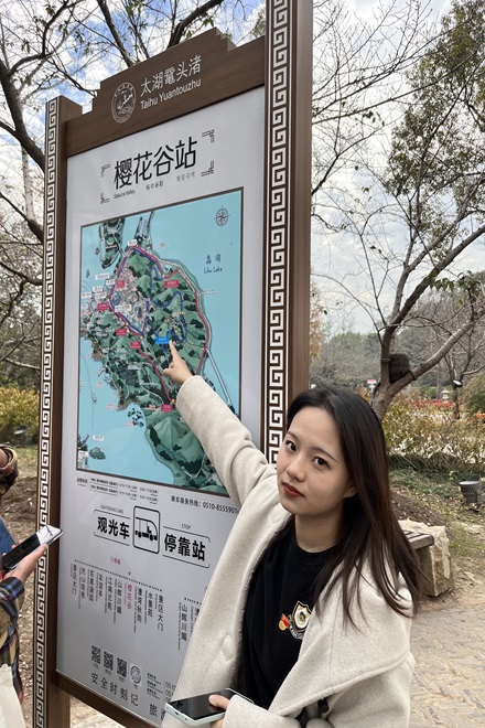 标识标牌是指有方向指引、讲解提示、文化传达等功能的牌子,承载着丰富的内涵,为人们的生活提供方便。中国在面向现代化、国际化发展的过程中,需要不断加强英文的普及使用,优化城市国际语言环境和营商环境,完善城市服务功能,展现城市高水平对外开放新形象。下午2点,全体成员来到景区,分成4个小组,对景区内外区域的标识牌、指示牌等外语标识进行及时拍照和规范性检查,充分发挥外语专业的优势,认真细致地为每一处外语标识标牌“找茬”,精雕细“啄”,学思践悟,推动以“啄”促改,以知促行,活动现场气氛活跃,党员们积极提出问题并进行相互交流。