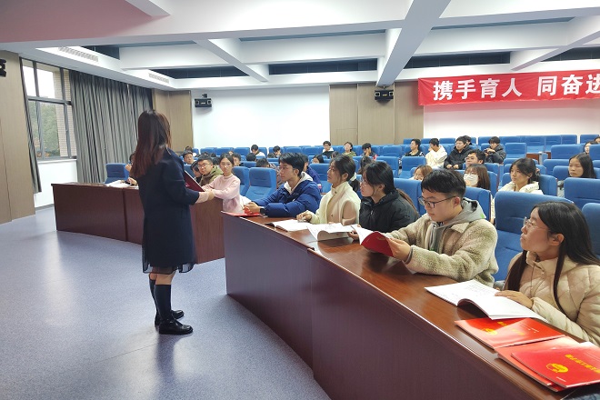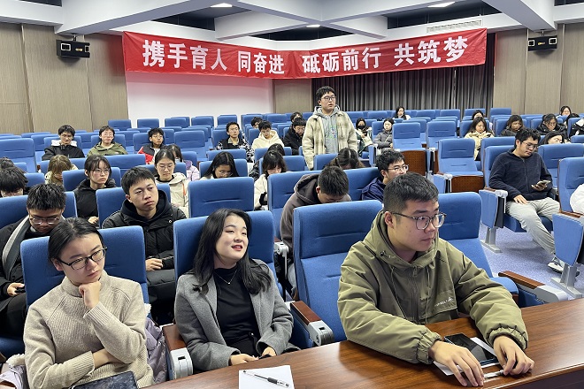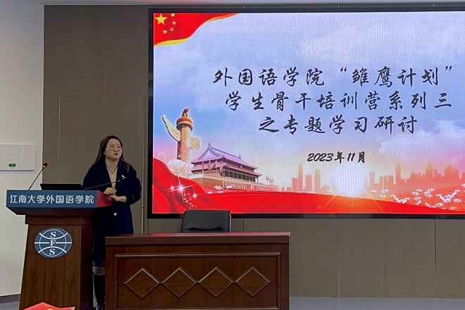 分团委于2023年11月30日下午在君金报告厅开展了“雏鹰计划”团学骨干培训营之专题学习研讨活动。参与本次活动的有马克思主义学院副教授周赟博士、新发展党员、团学骨干以及雷锋特称团支部全体团员。会议由分团委书记顾海星主持。