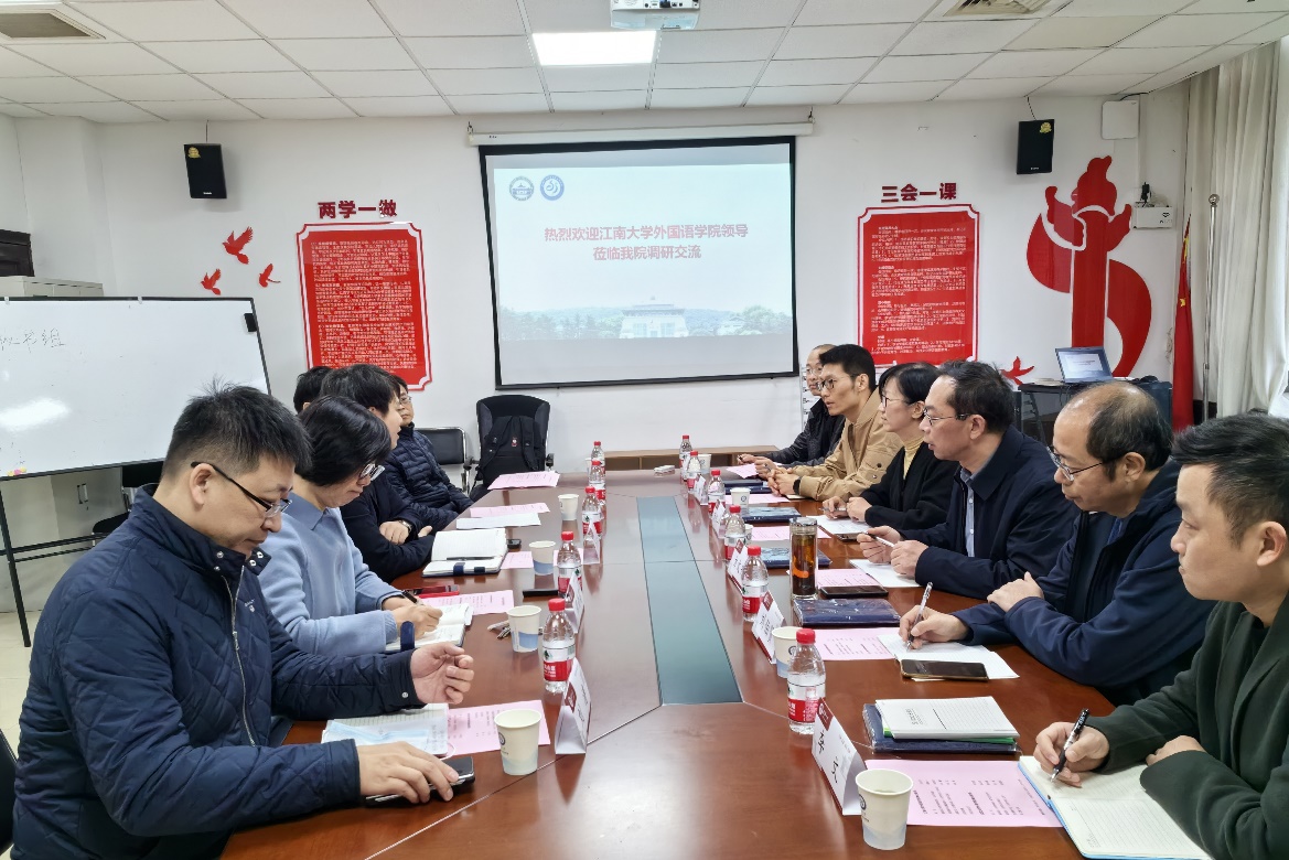 在人才培养、学科建设等方面取得的进展,以及在人才培养方案修订方面的设想。在随后的交流中,双方还围绕学科建设、科研团队建设、师资培养和学风建设方面进行了深入讨论。双方均表示,希望以此次调研交流活动为契机,进一步加强两个学院的交往,相互取长补短,促进外语学科发展,为服务区域经济社会发展做出应有的贡献。
