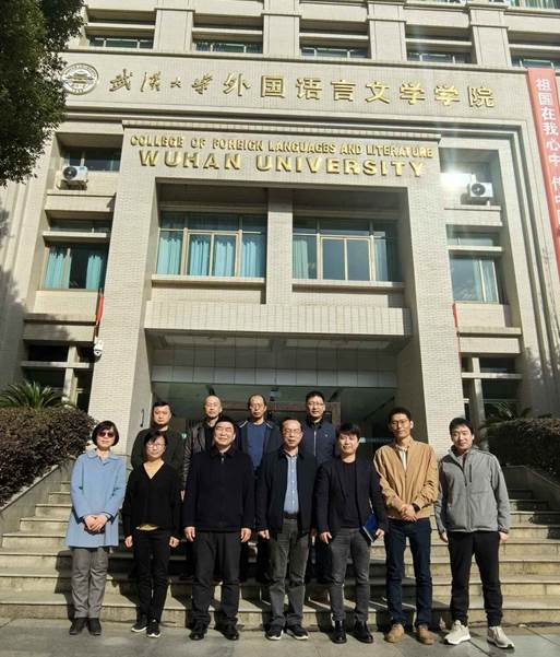 12月8日上午,调研团队前往武汉大学外国语言文学学院进行调研交流。座谈会上,武汉大学外国语言文学学院院长李圣杰对方文开院长一行的到来表示了热烈欢迎,详细介绍了学院的办学历史、学科专业建设、师资队伍建设、人才培养成果等方面的基本情况和特色亮点,并特别介绍了近年来在“外语+X(国际传播、涉外法律等)” 跨专业学科建设方面的创新举措。方文开首先对武汉大学建校130年周年表示了祝贺,高度评价了武大外院近年来取得的成果,同时围绕色色啦
