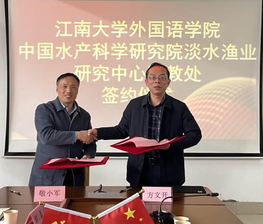 — 中国水产科学研究院淡水渔业研究中心平台合作框架协议书》, 确定了人才培养合作、科研合作等平台的搭建框架。而后,方文开院长与敬小军处长代表双方单位正式签署了协议书,并握手预祝合作顺利。