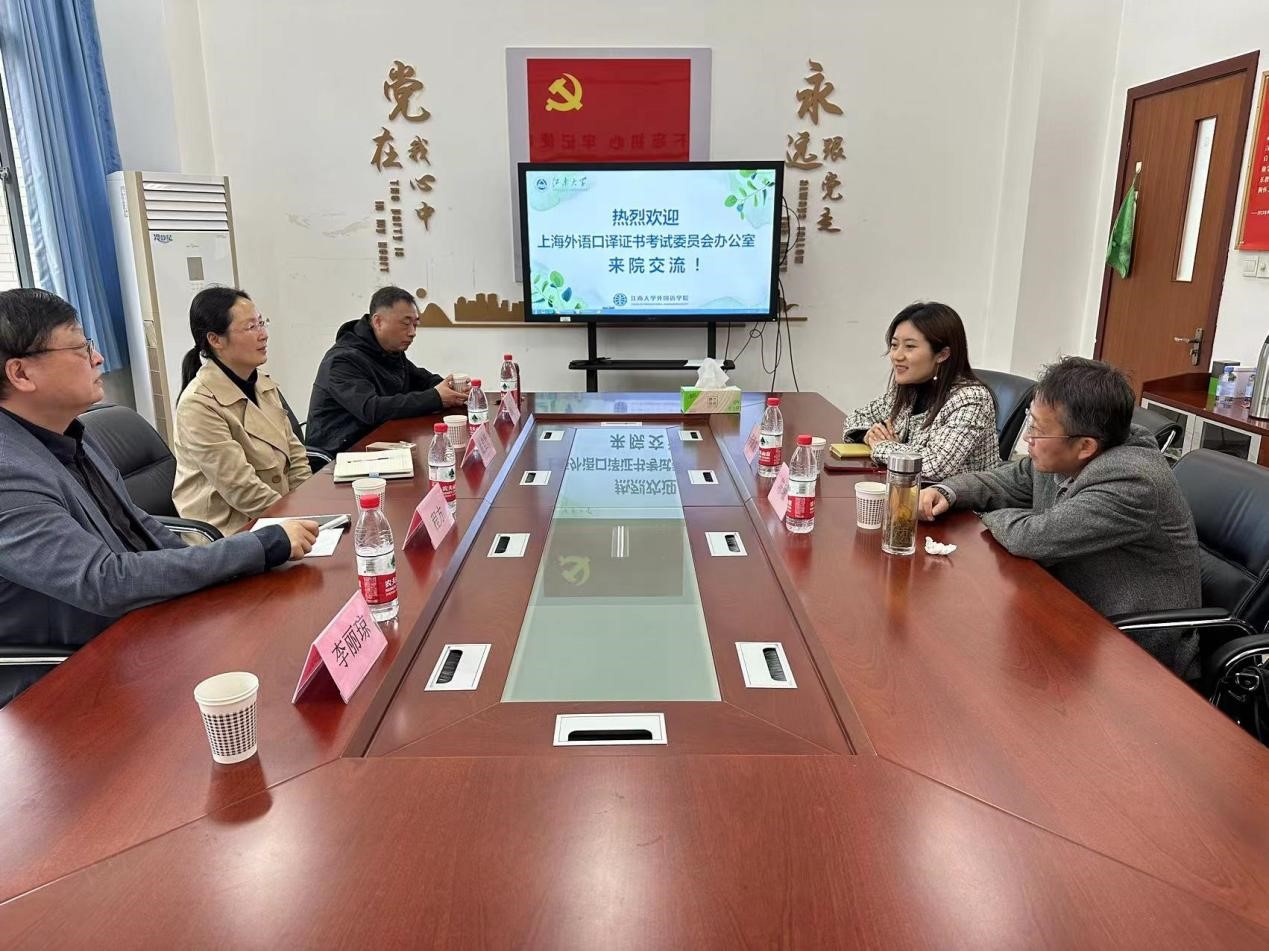 谢竞贤代表学院首先对上海外语口译证书考试委员会办公室老师们的到来表示热烈的欢迎,并简要介绍了学院的基本情况。程方主任介绍了考点建设和组织情况。李漪妮主任介绍了上海外语口译证书考试近年来的发展状况及今后工作的规划和设想,并对色色啦