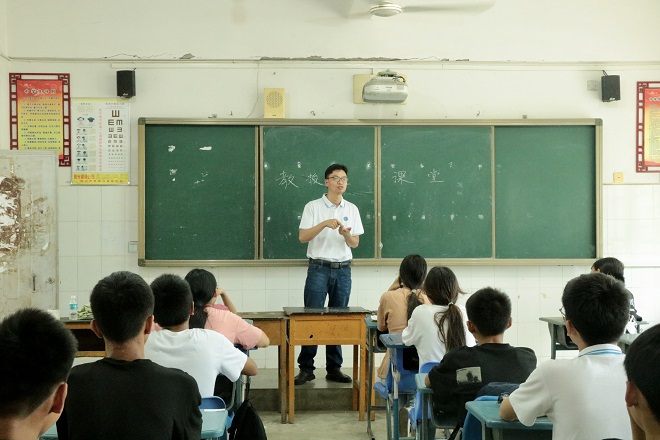 教授袁雪生,副教授、院长助理李文走进芒宽民族中学课堂,分别为芒宽学子主讲开营第一课“英语——瞭望世界的窗口”与“Difference & Value——英语差异价值融合”,旨在通过介绍生活中的英语、解读英语语言魅力,涵养学生英语兴趣,拓宽芒宽学子国际视野。“译路生花”英语特色夏令营的72名营员参加课堂。