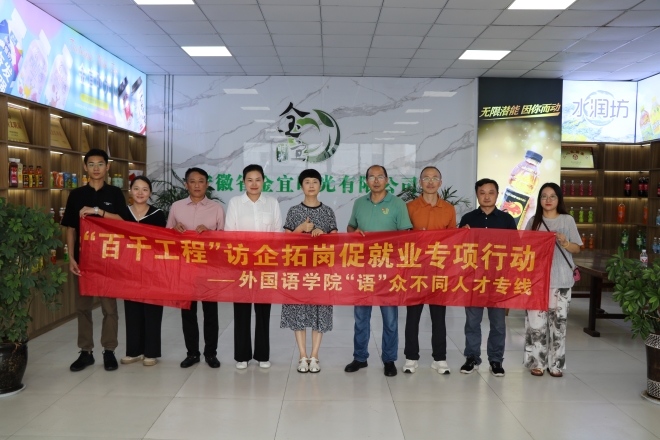 党委书记李荣华,党委副书记、副院长刘伯贤,英语系主任杨勇、院长助理、副教授李文,分团委书记顾海星,辅导员苗文建一行人,前往安徽省四家特色企业开展了“百千工程”访企拓岗促就业专项行动。