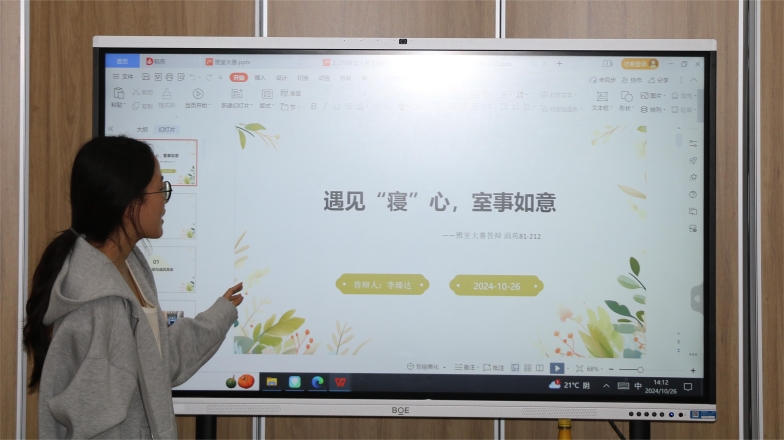 决赛环节,参赛选手们主要讲述自己宿舍的故事、展示宿舍的风采以及舍友之间的温暖情谊。按照抽签的顺序,宿舍代表依次上台进行介绍展示,展示中的每一张幻灯片都充满了她们充满笑与泪的回忆和故事,展示了她们如何在这个小空间里共同成长,相互扶持。81-214、81-219宿舍带来了悠扬的歌声,传递出她们对生活的热爱,以及对友情的珍视;81-214宿舍的弹唱给大家留下了深刻的印象;81-219宿舍的歌曲love story赢得了满堂彩,窗外雨声潺潺,她们的歌声充满了力量和温暖;81-216宿舍带来了强劲有力的舞步,给大家欢乐和惊喜,让大家感受到她们宿舍的活力和热情。