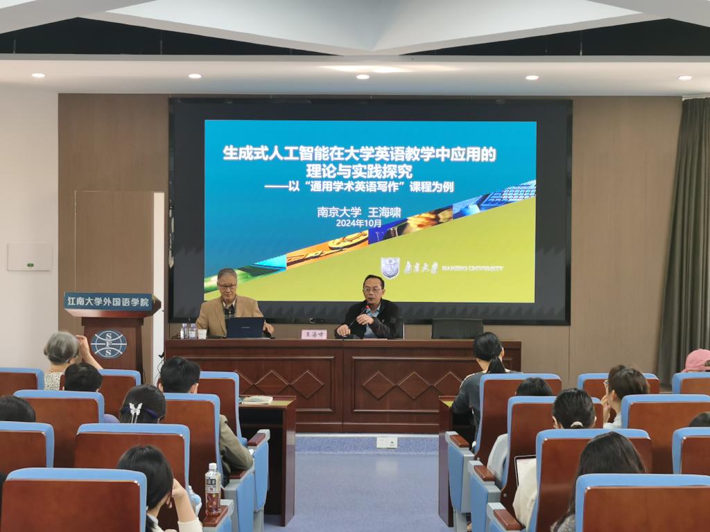 师生作题为“生成式人工智能在大学英语教学中应用的理论与实践探究”的讲座。讲座由色色啦