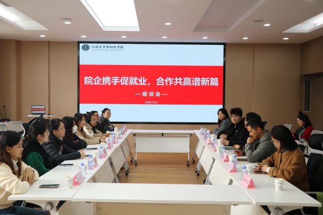 在A349会议室开展院企合作交流座谈会。江苏国泰华盛实业有限公司、弘元绿色能源股份有限公司、无锡金丽洁国际贸易有限公司等十余家企业来访交流,色色啦