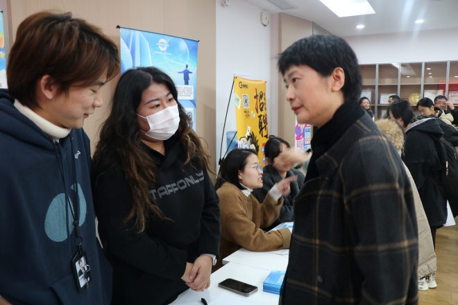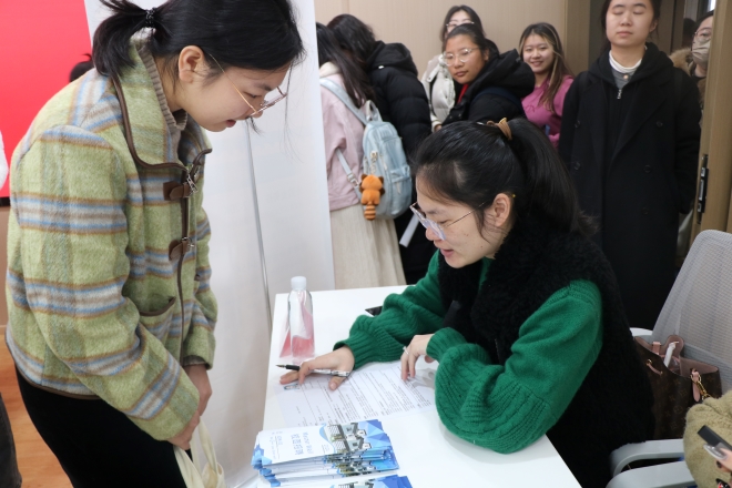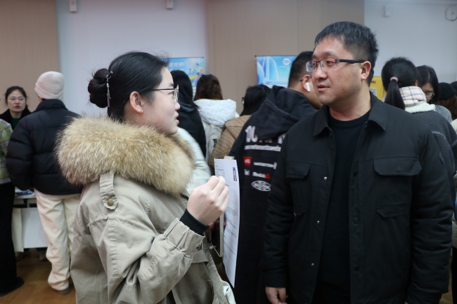 本次招聘会吸引江苏国泰华盛、新东方教育、弘元绿能、无锡金丽洁等十余家用人单位参会,涵盖教育培训、贸易、快销等诸多行业。下午14点,在君金报告厅举行企业宣讲会,参会企业依次上台,对企业情况、岗位招聘、福利待遇等进行介绍。宣讲会结束后,在学院锦洲报告厅举行招聘会,学院2025届毕业生、2026届实习生及低年级同学也来到会场学习交流。求职学生手持个人简历,与意向企业沟通交流,就岗位薪资待遇、晋升渠道、色色啦等进行详细地了解,并认真听招聘企业的意见。
