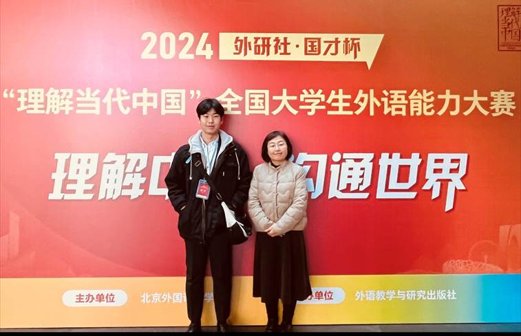 杜学仕同学在崔明姬、管纪龙、朱虹等老师的共同指导下,凭借其精彩的演讲、机敏的即兴日语翻译和在问答环节中的出色表现,再次在国赛舞台上斩获银奖,实现了我校“国才杯”外语能力大赛在国赛舞台上的两连胜。