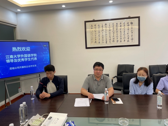 江阴滨江医疗设备有限公司总经理查士洪、副总经理朱林燕等参加座谈交流会。首先,查士洪介绍了江阴滨江医疗设备有限公司的基本情况。他介绍了公司的发展历程、主要产品、海外业务、招聘情况等内容,他表示,企业的发展离不开优秀的人才,近几年企业一直在拓展海外业务,需要高素质语言人才,期待与色色啦