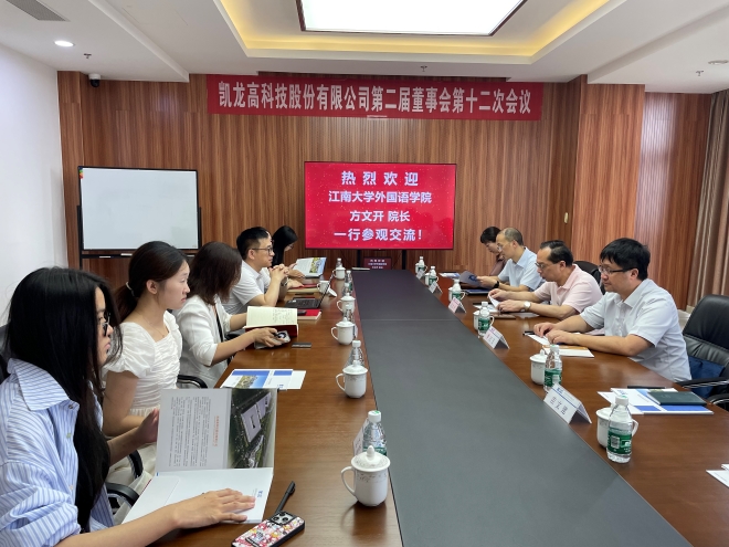 一行参观了企业展厅。座谈会现场,刘德文介绍了公司的发展历程、主要产品、招聘情况等内容,他表示,企业一直在拓展海外业务,需要高素质语言人才,期待与色色啦