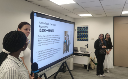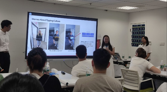参加夏校活动的美国加州戴维斯分校学生团队 活动聚焦美式商务沟通实践,通过主题分享、情景模拟、互动游戏等形式展开。结合电子商务案例,生动阐释了美式商务文化理念。在模拟洽谈环节,双方围绕各种真实场景展开对话练习,有效提升了跨文化交际能力。