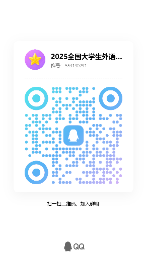 “综合能力赛项”参赛注册:登录大赛官网(//ucc.fltrp.com/),参赛选手须在“选手报名/参赛”页面注册报名“综合能力赛项”,流程可参考官网报名指南,//mp.weixin.qq.com/s/TIQ5SyRHBQhykzPi6qVWqA。并且,获取备赛资源。报名成功后请立即加入“2025全国大学生外语综合能力大赛QQ群”(群号553130291)。