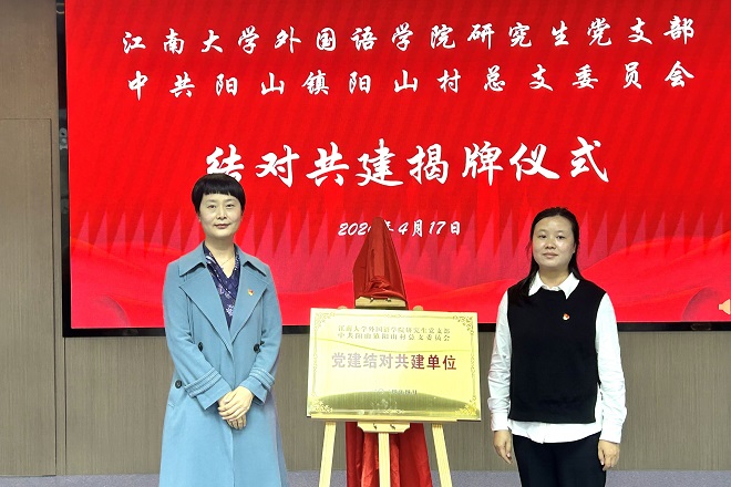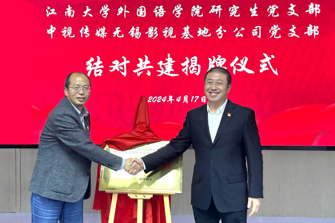 研究生党支部与无锡阳山镇阳山村党总支、中视传媒无锡影视基地分公司党支部共建揭牌仪式顺利举行。“译锡游”文旅共建旨在助力无锡市国际化城市形象建设,持续推进江南精神塑造,坚持打造特色外语品牌,开创“校政共建、校企共建、校村共建、校馆共建”新局面,实现育人合力。