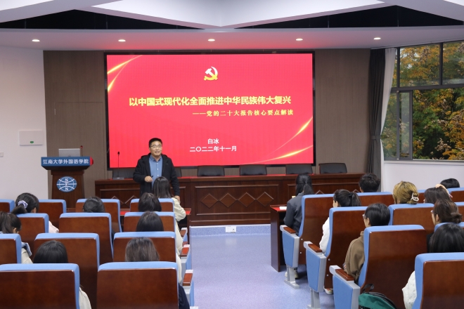 最后,本次信仰公开课邀请了马克思主义学院副研究员白冰老师为大家带来题为《以中国式现代化全面推进中华民族伟大复兴——党的二十大报告核心要点解读》的讲座。白老师从大会的基本概况、主要内容、历史意义三个方面对党的二十大作了全面宣讲和深入阐释。并寄语青年要坚定不移听党话,跟党走,立志做有理想、敢担当、能吃苦、肯奋斗的新时代好青年。